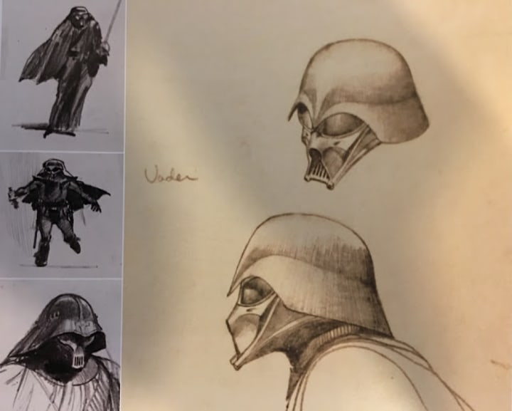 Although Darth Vader was not originally intended to be a cyborg, but rather a normal human character, Lucas always envisioned him as a tall and dark figure, who would wear a big hat, like that of a fisher, but made of metal. The mask and the black suit were added, because he and the stormtroopers were originally intended to leap through space from the big Imperial ship to the small Rebel ship at the beginning of the movie.