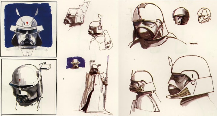 One of the helmet concepts was later used in season 3 of The Clone Wars for the bounty hunter Rako Hardeen.