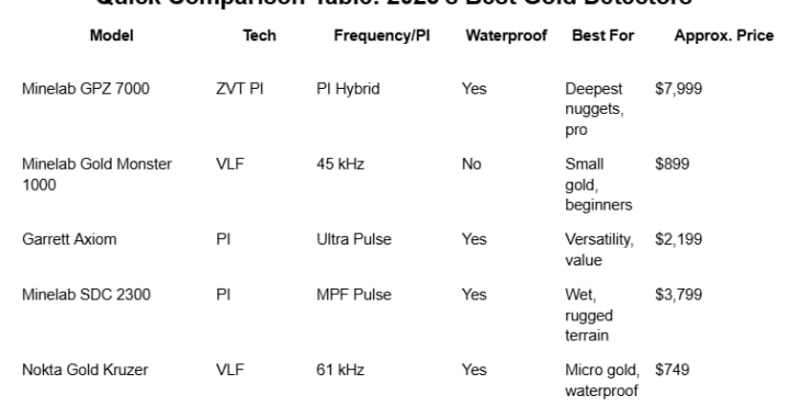 Quick Comparison Table: 2025’s Best Gold Detectors