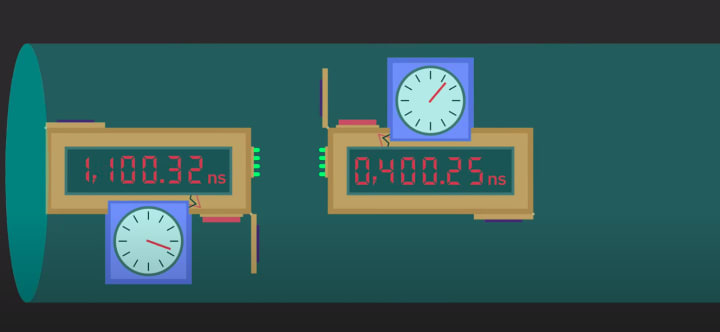 Okay, new plan, start with the clocks together and sync them up first and then send one of the clocks down to the end. Now, what could possibly go wrong? Well, I'll tell you. The clock at the finish line was moving