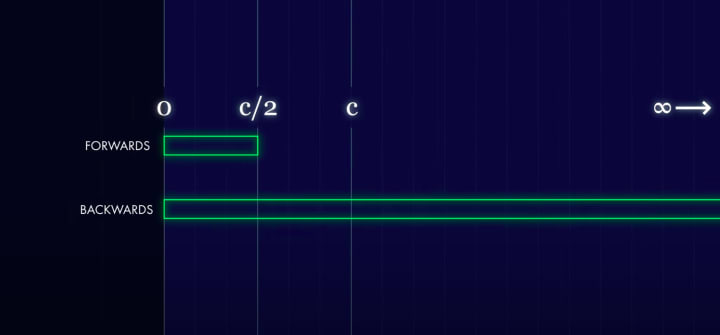 But why would the speed of light be different? Well, there may be some preferred direction through spacetime. I mean, our universe has a lot of symmetries, but there is also some asymmetry. For example, why is there so much matter relative to anti-matter? And physicists have worked out internally consistent theories of physics in which the speed of light is different forwards and in reverse. The speed of light could vary by just a few per cent up to at the extreme, going' over two in one direction