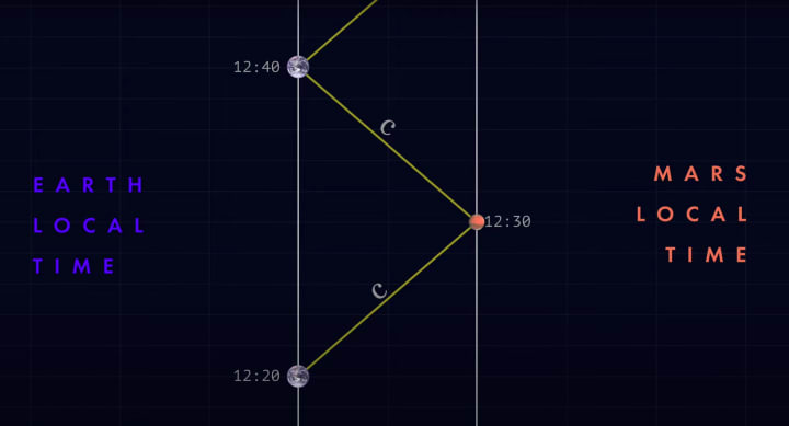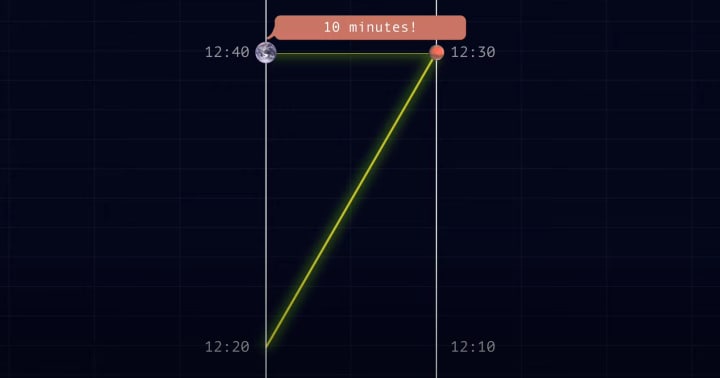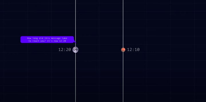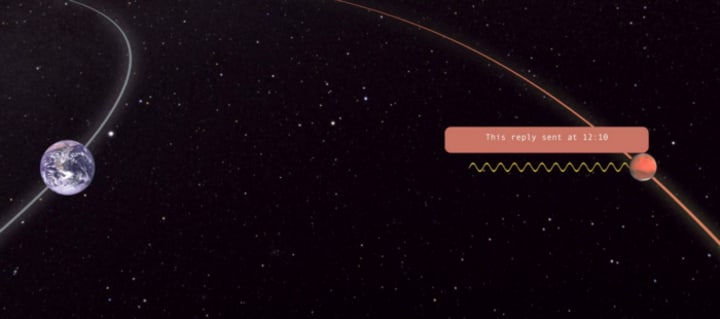 Think about communicating with an astronaut stranded on Mars. Let's call him…Mark. We send out a signal and get a response 20 minutes later. So we imagine our signal takes 10 minutes to get there and the reply takes