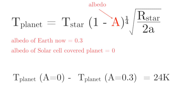 So hopefully you can see from this equation that if I decrease the albedo I'm gonna raise the temperature and it would raise the earth's