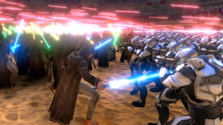 To clarify, the test clearly doesn't abide by the rules of the Star Wars universe or use technically accurate portrayals of various soldiers, but it does a decent enough job of showing us what would happen if a Jedi army were to clash with sword-wielding soldiers.