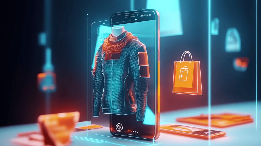AR technology seamlessly blends the digital clothing with the real-world image of the shopper, creating a convincing composite image or video.