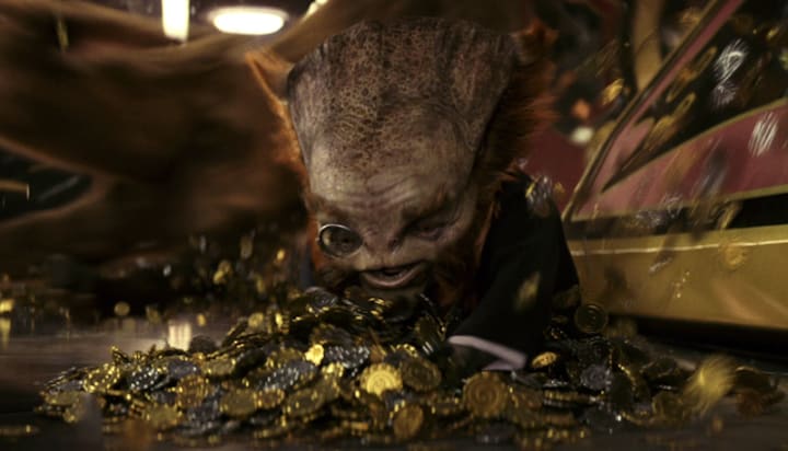 In the chaotic casino scene, Mark Hamill portrayed Dobbu Scay, the drunken, diminutive gambler who mistook BB-8 as a lugjack machine and kept inserting coins into different slots of the droid. His voice acting talent was showcased when the herd of fathiers stampeded through the casino, Scay screeched in laughter as the chaos led to coins spilling all over the floor around him. It is interesting to note that Hamill not only did its voice, but he actually filmed the scenes in a motion-capture suit, giving life to the character.