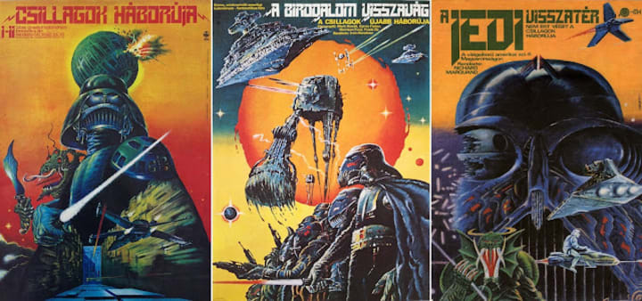 The posters were originally painted in oil paints. The original artwork was auctioned off in 2015 for a total of $32,100 after being in the Budapest Poster Gallery. See below for detailed images of what is actually in these crazy paintings. The reason that the posters were controversial was that it was originally claimed that Tibor Helényi hadn’t seen the movies before doing the artwork. However, in an interview with a Hungarian blog, Kunszt, in 2013, Helényi told them that he had in fact seen, and enjoyed, the movies. He did not want to paint posters that looked like the ones that the Western Europe and the United States had been coming out with. He wanted to make them different. So, letting his imagination run wild, his own artistic vision came to the page. He even added elements to the posters that were extraneous or didn’t actually appear in the Star Wars universe, such as the tusked monsters in The Return of the Jedi’s poster and the lizard/dragon being holding a sword in A New Hope’s poster.