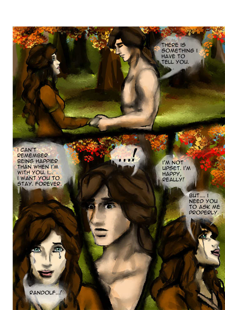 “Randolf I…” Tears started to well up in her eyes and he balked slightly. Shaking her head she quickly said, “I’m not upset, I’m happy, really!” Laughing she added, “But I need you to ask me properly.” He grinned wolfishly and knelt down on one knee.