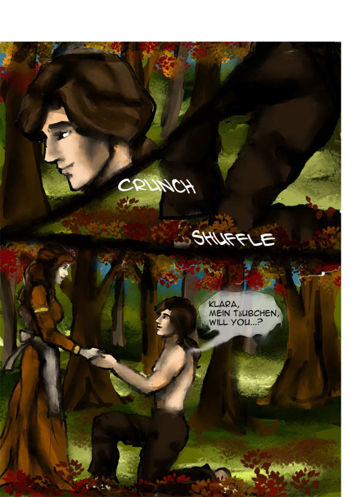 “Klara, mein Täubchen, will you…?” He suddenly paused, turning his head at a sound Klara couldn’t hear.