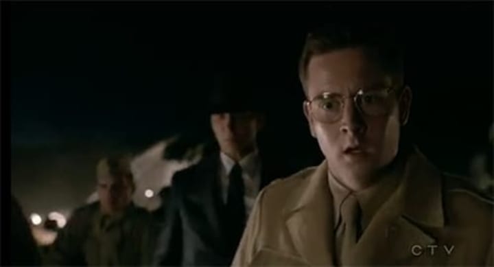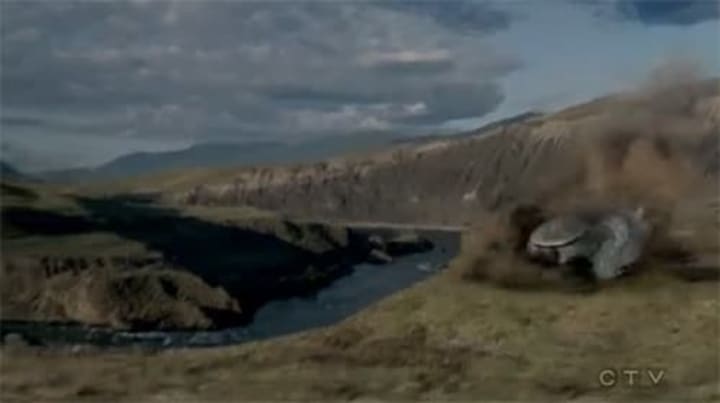02:00- This opening U.F.O. crash would give even Star Trek a run for it's money. Bonus points for good C.G.I. and a nice bit of nostalgia. They keep over emphasising the word Roswell, so I guess this is a flashback to then.
