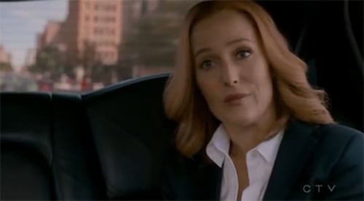 05:00 - Back in 2016 we get our first (back of the head) look at Dana Scully; a slightly more pinch-faced version of her pudgy 1993 counterpart. Five minutes in and I already think "these two are totally gonna pork." Mulder and Scully meet exchange pleasantries and talk about a man named Skinner (I assume not The Simpsons principal).
