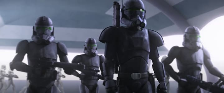 The Bad Batch also carries enormous potential in explaining whether and how the team removed the chips. The official trailer shows that the Bad Batch is on Kamino (along with many other clone troopers and Kamino security forces in an assembly area) to watch Emperor Palpatine's iconic Empire ascension speech in the Galactic Senate building. There were also multiple scenes of the new (Death Trooper predecessor?) "elite squad troopers," with the Bad Batch likely finding themselves in skirmishes or all-out fights with the ordinary clones, who may have been ordered to hunt down the team following a potential "betrayal" by removing the chips and leaving the newly formed Empire.