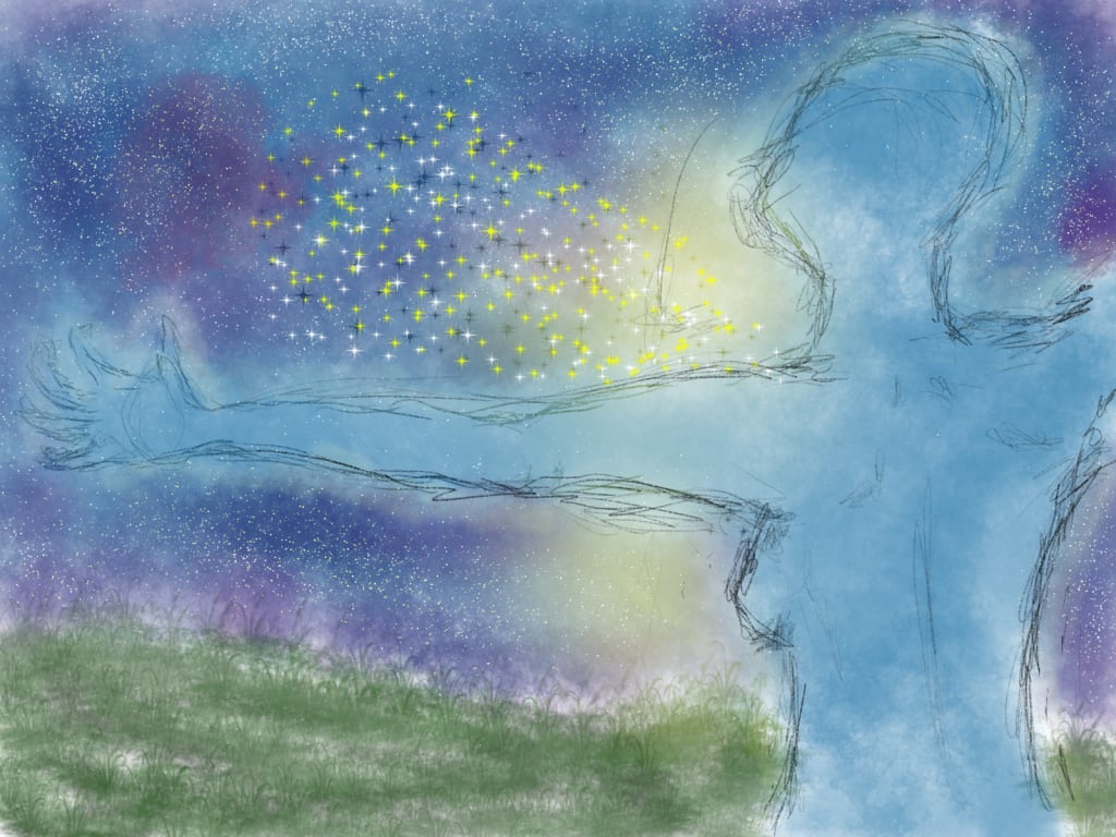 Has the night sky always been this colorful? I always thought it was a shade of navy blue. But I see the white and yellow stars. Soft waves of purples and deep greens.