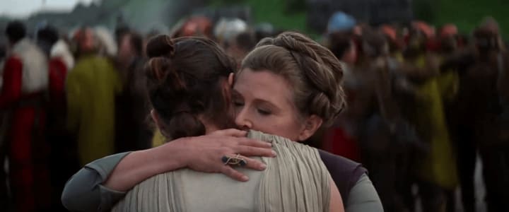 I mean, this would explain the weird, motherly hug that Leia gives Rey at the end of The Force Awakens.
