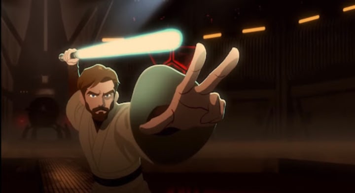 On your first watch-through, even if you haven’t seen all 9 installments of the Skywalker Saga, you’ll most likely recognize more than one familiar face and definitely a good selection of familiar voices. The Clone Wars fans among us will most definitely recognize the iconic voice of Tom Kane, the voice actor responsible for a slew of Clone Wars characters including Admiral Yularen, Jedi Master Yoda, and even the series narrator. Many fav-favorite characters from the Skywalker Saga make an appearance, using audio and voice lines from the Saga films, including Hayden Christianson as Anakin and Ewan McGregor as Obi-Wan.