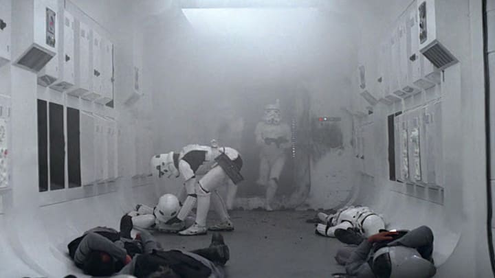 From the first moment the stormtroopers arrive on the scene, their entrance is an explosive one. We find our troopers breaching the heroes’ ship with a boarding party. Alarms blare and the rebels on board take up arms to defend themselves. These rebels know exactly where the troopers will be coming from—a small door at the end of a narrow hallway. While the defenders have every conceivable advantage, they are quickly cut down by the attacking force. Despite this ideal beachhead, the superior training and, dare I say it, the accuracy of the stormtroopers win the day. They even manage to capture Princess Leia, one of the story’s main heroes.