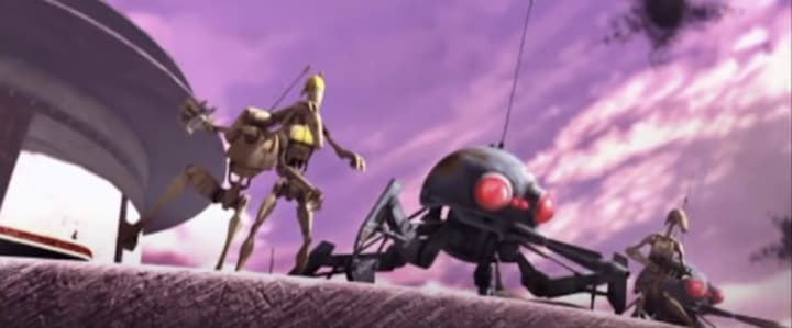 It is understandable that in the pursuit of appealing to audiences of both children and adults, The Clone Wars movie attempted to strike a balance between a mature and childish tone throughout the film's storytelling. Opening with the Battle of Christophsis that showed the brutal side and casualties of war, appropriately-placed breaks relaxed the movie's pace with humor and banter between the protagonists. However, the latter may be seen as a bit over the top, such as the battle droids on Teth.