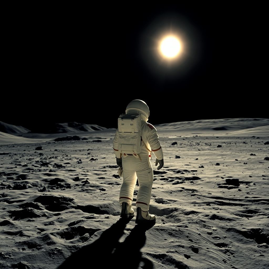 Imagine standing on the Moon’s dusty, gray surface, suited up in your bulky spacesuit, surrounded by absolute silence. Above you, a pitch-black sky stretches out endlessly. The Sun blazes down, not through a blue sky, but in raw, direct brilliance. You take a step and suddenly notice your shadow. But it’s… bizarre. Unlike anything you’ve ever seen on Earth.