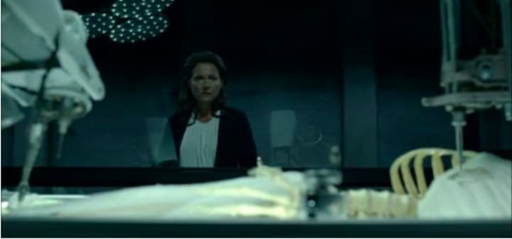 Biting the bullet - You all saw it, in fact, the whole board saw it. A bullet through the back of the skull and through a champagne flute looks like DEAD certain to kill someone off. Don't expect any miraculous Hannibal (NBC show) survival where Dr. Ford returns missing half a jaw. That was a clean shot and we saw the body drop just off screen!