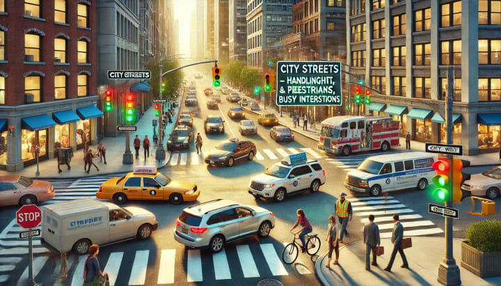 🚗 City streets – Handling stoplights, pedestrians, and busy intersections