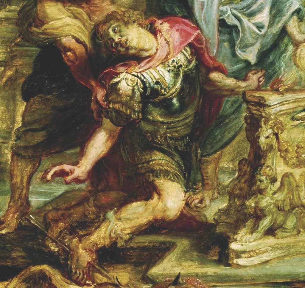 Achilles’ anger leads him to take revenge on his Trojan rival Hector, whom he kills, by dragging his body round the walls of Troy behind his chariot, but then he realises that he has broken the code of military honour and allows Hector’s father, King Priam, to retrieve the body and give it a decent burial.
