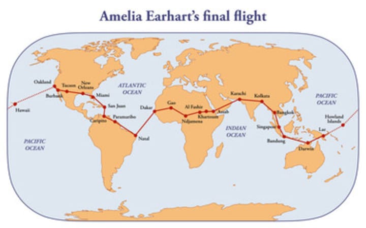 On July 2, 1937, Amelia Earhart and her navigator, Fred Noonan, began the final leg of their journey around the world. They were flying from Lae, New Guinea, to Howland Island, a tiny, uninhabited island in the Pacific Ocean.