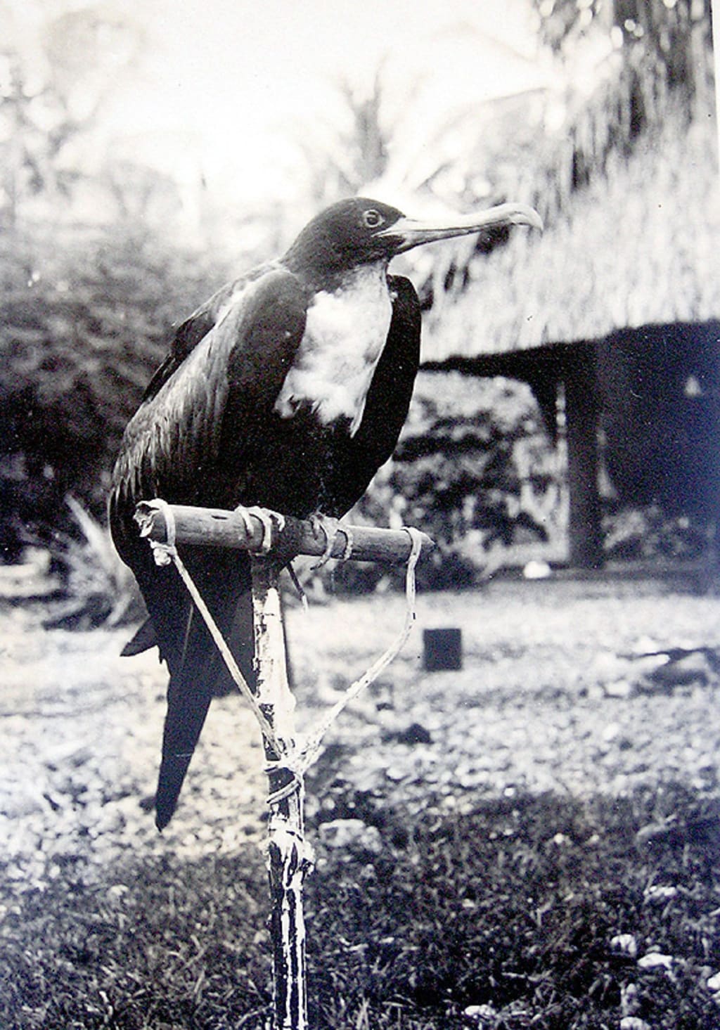 Once sufficiently tamed, they were released every morning to fly off in search of food. The bird returned at dusk to its owner, who waited on the terrace. When wild frigate birds returned with them, the game of bird snaring began again. The men also knew the art of ‘calling the bird’ so that their birds returned on command.
