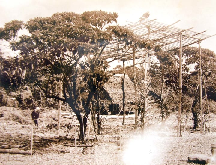 2. Te baobao (tall wooden frames) built high off the ground were a resting place for the tamed birds. A good supply of fresh fish was essential to feed the birds during the taming process.
