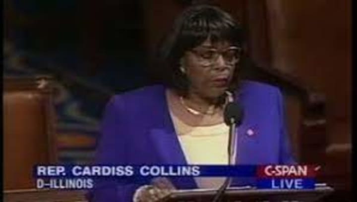 Former U.S. Congresswoman Cardiss Collins was born on September 24, 1931, in St. Louis, Missouri. When she was ten years old, she moved with her family to Detroit, Michigan, where she attended the Detroit High School of Commerce. After high school, Collins moved to Chicago, Illinois to find a job. While working as a stenographer with the Illinois Department of Labor while simultaneously attending Northwestern University in Evanston, she earned her B.S. degree in accounting. She was promoted to secretary, then accountant at the Illinois Department of Revenue before becoming the revenue auditor. In 1958, Collins married George W. Collins, and in 1959, their son, Kevin, was born. Collins served as committeewoman of the 24th Ward Regular Democratic Organization, gaining her first political experience. She also participated in her husband’s campaigns for alderman, committeeman and U.S. Representative. On December 8, 1972, George W. Collins died in a plane crash. Collins was elected to Congress in the June 5, 1973 special election to replace her husband. In 1978, she became the first African American and first woman to chair the Manpower and Housing subcommittee of the House Government Operations Committee and to be named Democratic whip-at-large in the House. One year later, she was elected president of the Congressional Black Caucus (CBC). The recipient of honorary degrees from Barber-Scotia College, Spelman College, and Winston-Salem State University, Collins was elected to the Black Women’s Hall of Fame in 1982. From 1983 to 1991, she served as chair of the Government Activities and Transportation (GAT) Subcommittee, where she helped pass laws that controlled the transport of toxic materials and helped provide more secure air travel. She also introduced the Non- Discrimination in Advertising Act, which denied federal tax write-offs to major advertising firms that ignored black-owned communications media, both print and broadcast. In 1990, she wrote a law expanding Medicare coverage for screening mammograms for millions of elderly and disabled women. In 1990, the Congressional Black Caucus presented Collins with the William L. Dawson Award for Legislative Development, and in 1991, she was honored with an American Black Achievement Award for government service. Later in 1991, she was named chairwoman of the Energy and Commerce Subcommittee on Commerce, Consumer Protection, and Competitiveness. While in Congress, she focused on establishing universal health insurance, providing for gender equity in college sports, and reforming federal child care facilities. Authoring the Child Safety Protection Act in 1993, which requires warning labels on dangerous toys and federal safety standards for bicycle helmets. The American Advertising Foundation established the Cardiss Collins Scholarship for Diversity in Advertising at the University of Illinois in 1996, which provides a full-tuition scholarship to a freshman University of Illinois student in advertising.