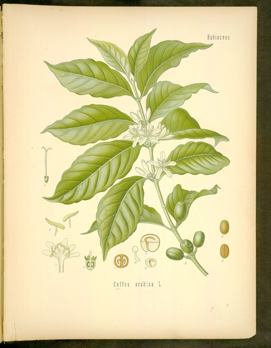 Coffee belongs to the Rubiaceae family, a large family of flowering plants with approximately 13,500 species, including herbs, shrubs, and trees. Notably, common characteristics of this family include opposite leaves, small white flowers, and berry-like fruits.