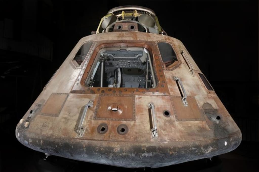 About 3 days later, the service module reached the sky above the earth, the fuel was exhausted, and it was abandoned, leaving only the "command module" (above) with a narrow top and three astronauts for three days. .