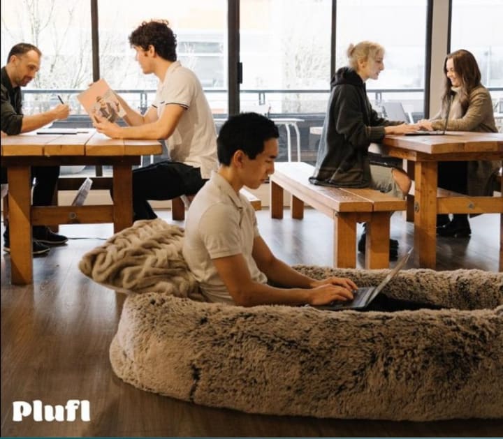 Co-founders Noah and Yuki met at the University of British Columbia in 2018. They quickly became friends after discovering they had a lot in common. They both loved dogs and wanted to become entrepreneurs. While at their college coffee shop, they saw a large Great Dane napping comfortably in a giant dog bed. That's how the idea of Plufl came about for Noah and Yuki to design a giant dog bed for humans.
