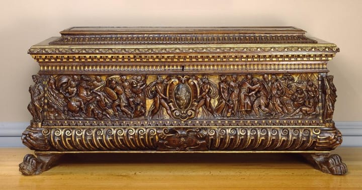 The chief item of furniture, throughout the house, was the “cassone” or large rectangular chest that served mainly as a storage facility but also for seating or a table surface. It was the custom for brides to be given a cassone at their wedding and for their possessions to be carried in the cassone through the streets to their new home, with the whole town cheering the happy couple. The cassone therefore became the focus for decoration in furniture, with other items largely neglected.