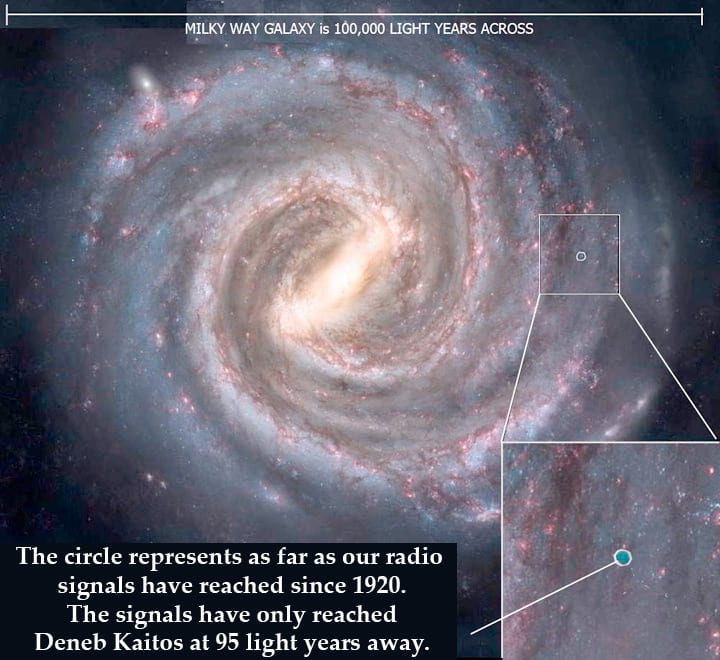 “Seriously?” I chuckled a little awkwardly. “What, it might bring on an invasion? But we’ve been broadcasting our existence since the 1930s, haven’t we? Television transmissions from every city go into space every day, blanketing the whole sky as the Earth turns. Military radar is even more powerful, and probably detectable for more than 100 light-years, no?”