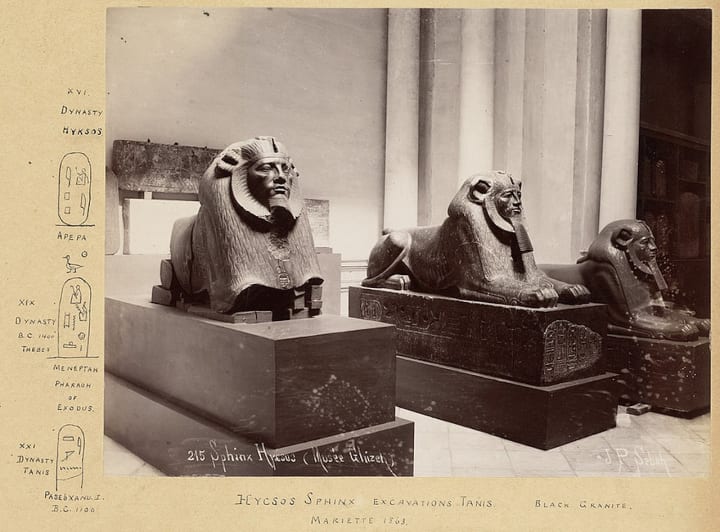 The Hyksos put their names all over Egyptian architecture and art. They redesigned Sphinxes of earlier Egyptian pharaohs. And the Egyptians reacted by writing that they took over through bloodshed, confusing Egyptologists for several years.