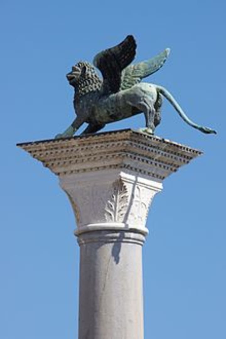 His symbol is the winged lion, which is found atop a column at the port side entrance to Piazza San Marco.