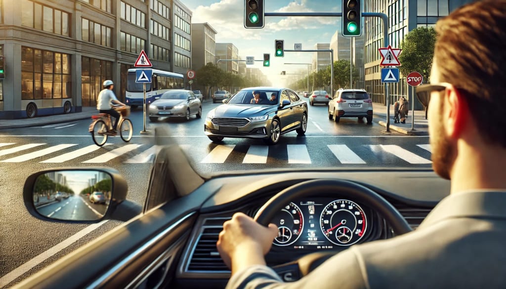 🚦 Awareness – Keeping an eye on surroundings, including other vehicles, pedestrians, and road signs.