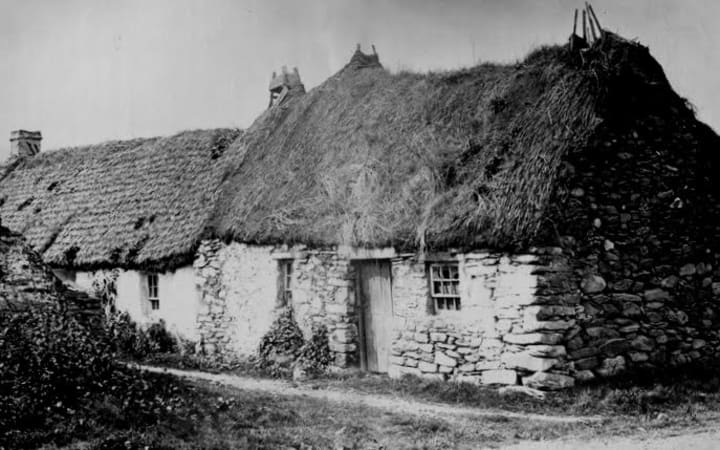 A friend was letting us stay in her cottage in Scourie, on the north coast (see the photo above). It was a crofter's cottage. There was little timber in the Highlands, and the soft stone can be split, so older buildings are made of stone and this was no exception. The crofters were given feudal concessions, narrow strips of land that went down to the sea. They could fish, farm the land, and fertilize it with seaweed. Their cottages were called 'Black Houses' because they burned peat for heat. Generally they had two rooms, one for humans and the other for their animals. That way of life came to an end in the late eighteenth century, when the Scottish lairds, who by then lived in London, realized that they could make more money off their lands by grazing sheep than by letting the property out to crofters. The Clearances, as that event is called, were brutal, often inhumane, as families who had lived in the same house for generations were evicted mercilessly so that their landlords could make more profit.