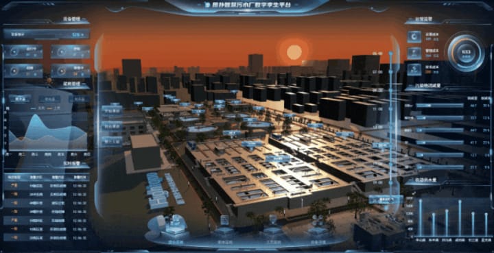 The application of digital twin technology in wastewater treatment plants provides a new perspective and tool for wastewater treatment and management, displaying real-time conditions within the facility on web pages, and offering platform support for real-time monitoring and diagnostics, process optimization, predictive maintenance, equipment management and maintenance, and simulation training.