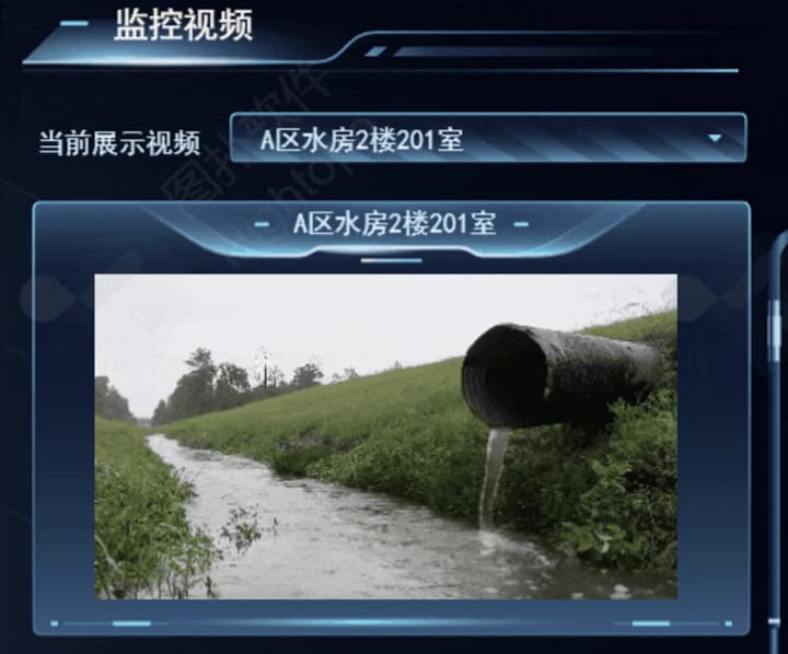 The HT dashboard supports integrating video streams in formats such as M3U8, FLV, and RTSP. Users can switch between different cameras to view real-time video, and the system supports displaying data and video on the same screen.