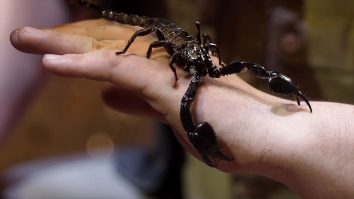 Something is not quite right about someone letting an orange baboon tarantula as big as your hand latch onto your arm. I scored 22.5 on their pain index. A giant Asian centipede about 10 centimeters long scored an excruciating 23.25.