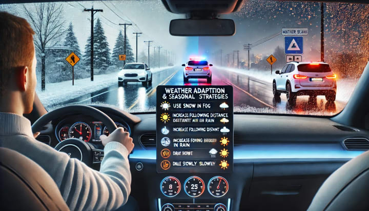❄️ Weather Adaptation & Seasonal Driving Strategies – Learn to drive safely in snow, rain, fog, and other weather conditions.