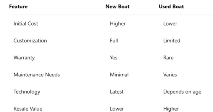 New vs. Used Boat Comparison Table