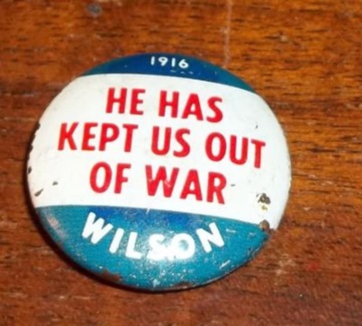 8. Woodrow Wilson adopted the slogan “He kept us out of war” when he ran for his second term in office. Within a month of being re-elected and sworn in, he declared war on Germany.