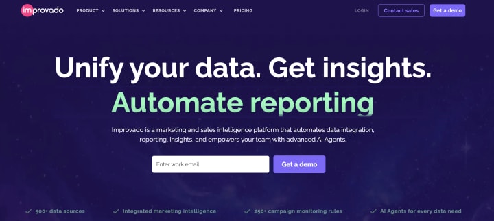 Improvado is the go-to analytics solution for mid-to-large enterprises and marketing agencies that demand robust data integration and reporting automation. Designed for sophisticated marketers, it seamlessly centralizes data from over 500 marketing and sales platforms, delivering AI-driven insights to fuel strategic decisions.