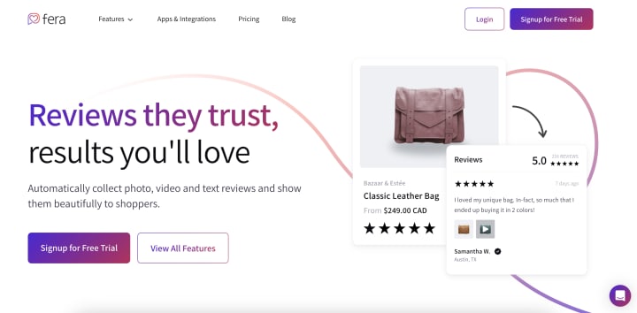 Go with Fera if you’re an e-commerce brand looking to increase social proof through reviews.