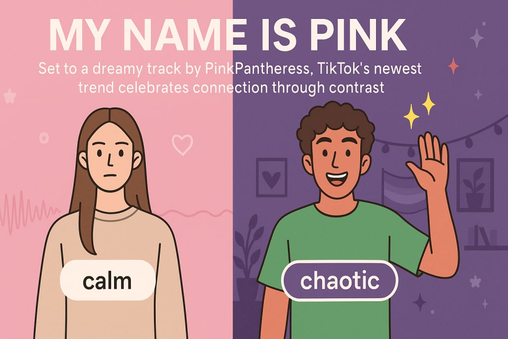 It started with a whisper — a soft, lo-fi voice says, “My name is Pink,” followed by another voice answering, “And I’m the opposite.” Then came a flood: couples, best friends, siblings, even pets. The TikTok screen would split in two, and across millions of pages, a new trend would bloom like a neon flower in a grayscale garden.