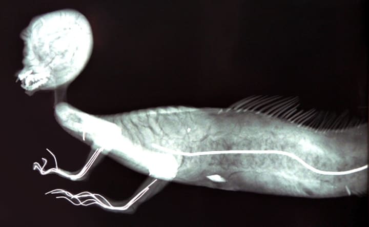 It is a sophisticated implant of a monkey's body and a fish's tail. The team used advanced technology to thoroughly investigate the structure of this monkeyfish. In March 2011, they took an X-ray of the monkeyfish mummy at the Horniman Museum.