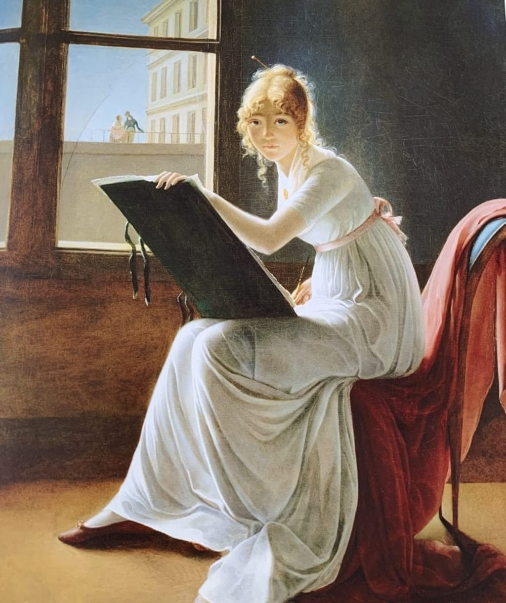 Not everyone agrees that this portrait of an artist at work is by Marie-Denise Villers. There was a time when it was believed to be by Jacques-Louis David and then a strong case was made for Constance Marie Charpentier being the portraitist.