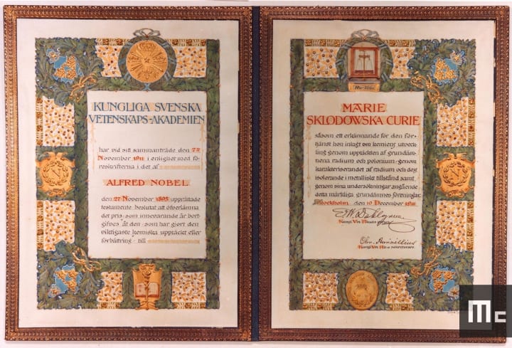 By 1903, Marie obtained her doctorate and, the same year, the Curies shared with Becquerel the Nobel Prize for Physics for their work on radioactivity. Financially strained, the couple were unable to attend the ceremony in Stockholm. Nevertheless, their important work had been internationally recognised. Another daughter, Eve, was born in 1904, and Pierre — thanks to the Nobel Prize — finally landed the position of professor at the Sorbonne. Marie was appointed chief assistant in the lab her husband directed, and the future was looking bright.